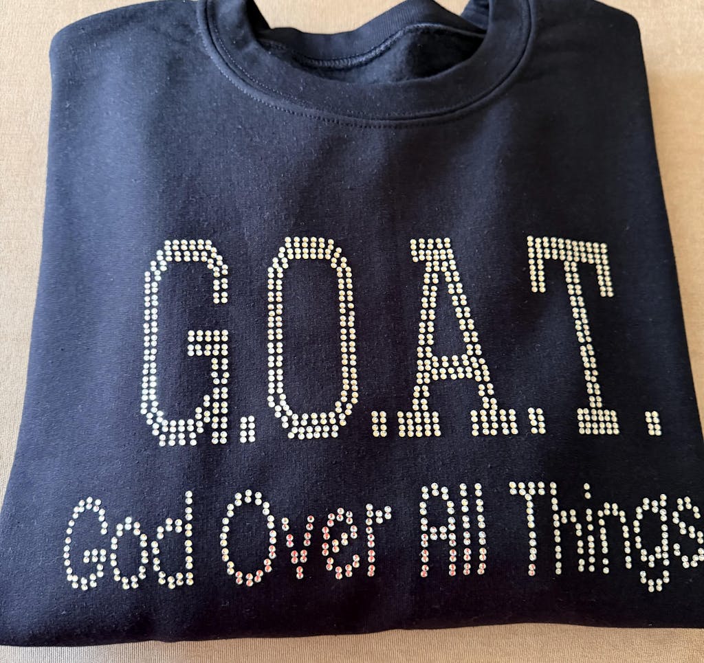 Text: “G.O.A.T. – God Over All Things”
